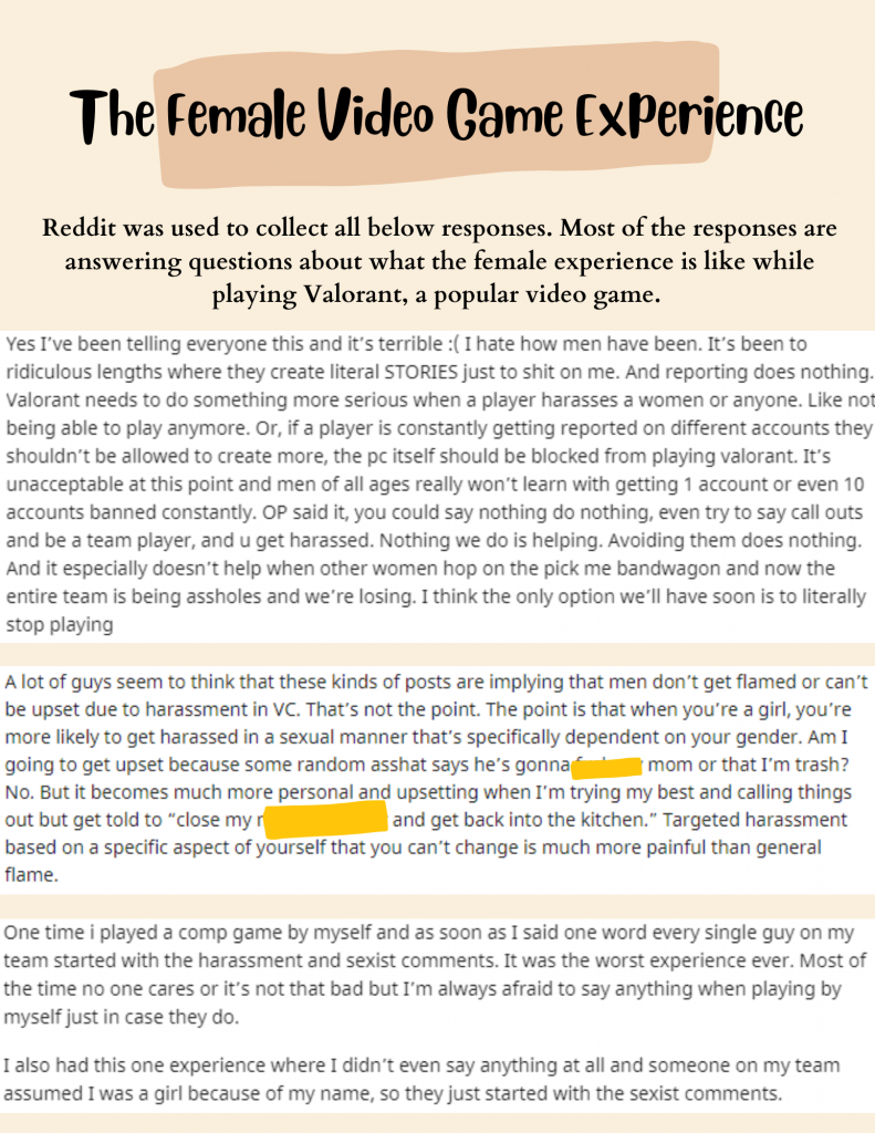 Harassment begins as soon as a girl/woman speaks into her microphone, or even sooner, because a gamer tag could be “too feminine”, so the person is automatically assumed to be a girl/woman.