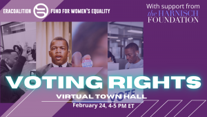 Join the ERA Coalition and Fund for Women's Equality for a virtual discussion on the future of voting rights in the United States. We'll talk to leaders and advocates at the forefront of the fight to protect and expand access to the franchise, and learn more about what we can all do to protect our most basic building block of democracy.