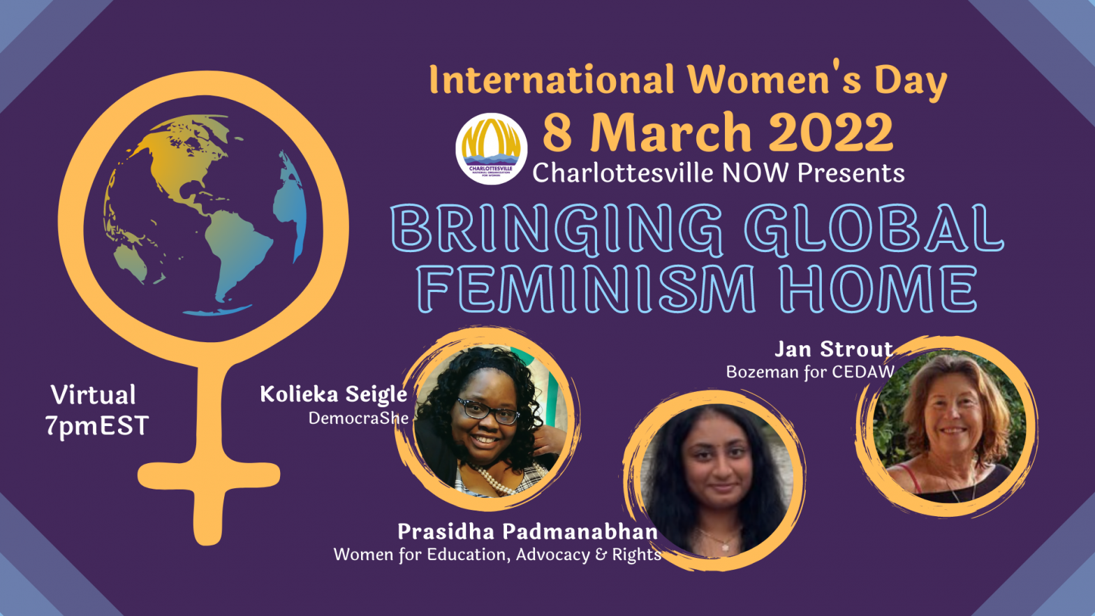 On International’s Women’s Day, powerhouse presenters Kolieka Seigle, DemocraShe and Jan Strout, Montana NOW and Bozeman Cities for CEDAW Initiative, are “Bringing Global Feminism Home,” revealing the intersection of domestic policy and international policy on women’s human rights worldwide. They’ll cover such topics as advancing reproductive justice (global gag rule), constitutional equality, ending gender-based and all forms of violence against women, and U.S. and global feminist foreign policy. And they’ll answer the question, “what the heck is CEDAW?” (Hint: UN women’s human rights treaty barring all forms of discrimination against women, ratified by nearly all the world’s countries, but not the U.S.!)